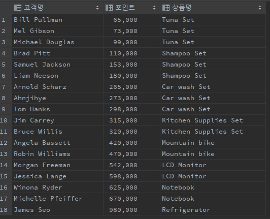 select c.gname 고객명, to_char(c.point, '999,999') 포인트, g.gname 상품명