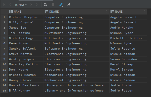 where s.deptno1 = d.deptno and s.profno = p.profno;
