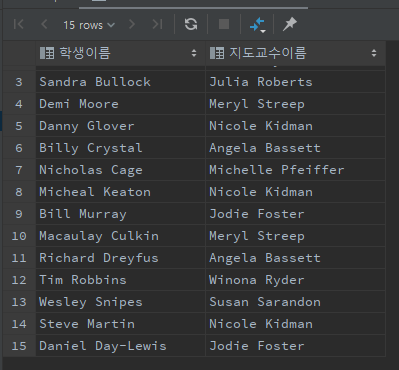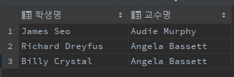 예제 -- 학생이름과 담당 지도교수 명 출력