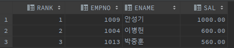 WHERE ROWNUM <= 3; -- 3명만 출력