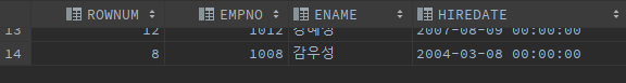 select rownum, empno, ename, hiredate from emp order by ename desc;