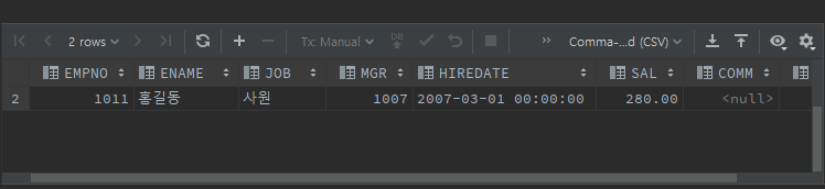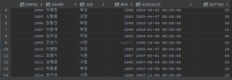 select * from emp; -- view를 이용해서 물리적 데이터에 값을 삽입, 수정이 된다.