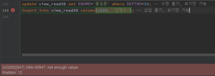 - insert 문을 이용하여 뷰안에 데이터 추가
