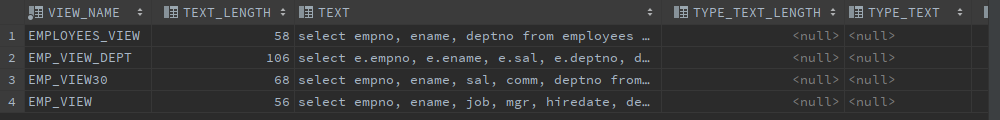 as select empno, ename, deptno from emp where DEPTNO=30; -- 뷰 생성