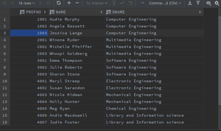 from ( select PROFNO, name, pay, rownum num from PROFESSOR )